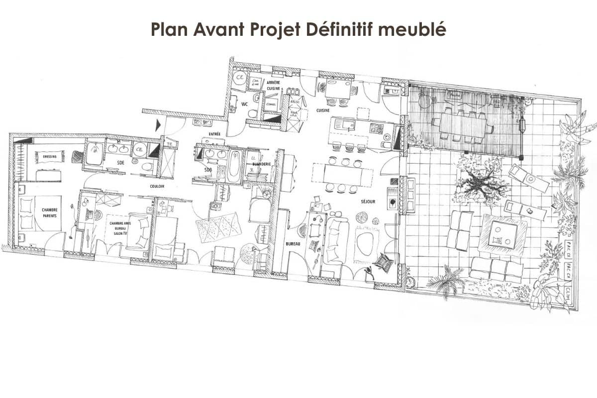 Claire a étudié plusieurs scénarios d’aménagement. Le choix final s’est porté sur une organisation astucieuse autour de grandes zones fonctionnelles, où chaque espace est pensé pour durer et évoluer.